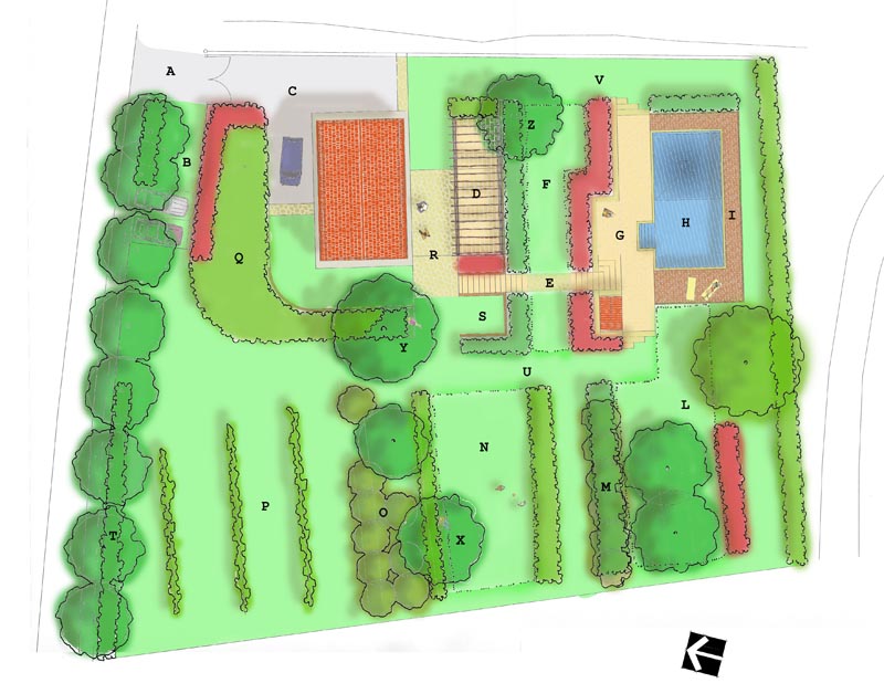 La parte del giardino più ricca di preesistenze (vigneto, frutteto…) è stata invece sviluppata nel senso del matenimento e della valorizzazione dell’esistente ma soprattutto dell’integrazione al paesaggio agrario circostante, tramite la creazione di un giardino/campagna più legato alla tradizione.