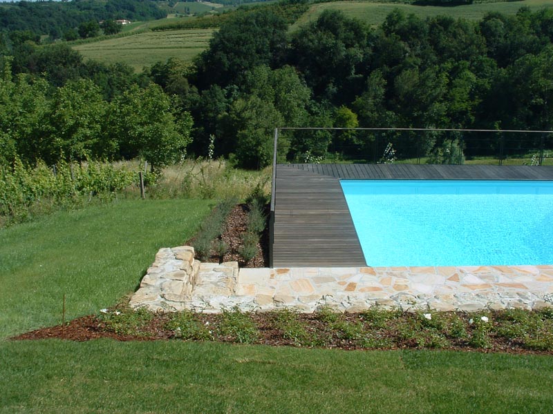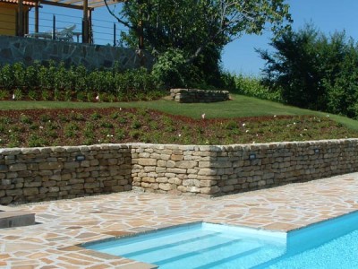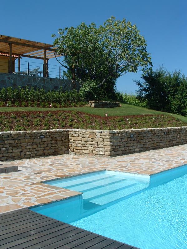 La porzione di giardino più vicina all’edificio è stata resa più fruibile attraverso terrazzamenti e sistemazioni scenografiche per creare un luogo dove sia possibile per i proprietari svolgere varie attività all’aperto in una cornice stimolante ed appagante.