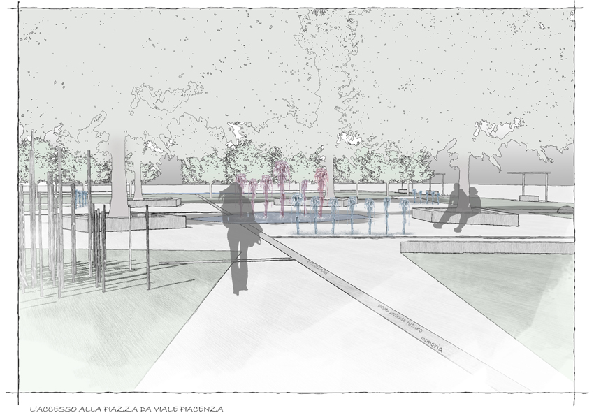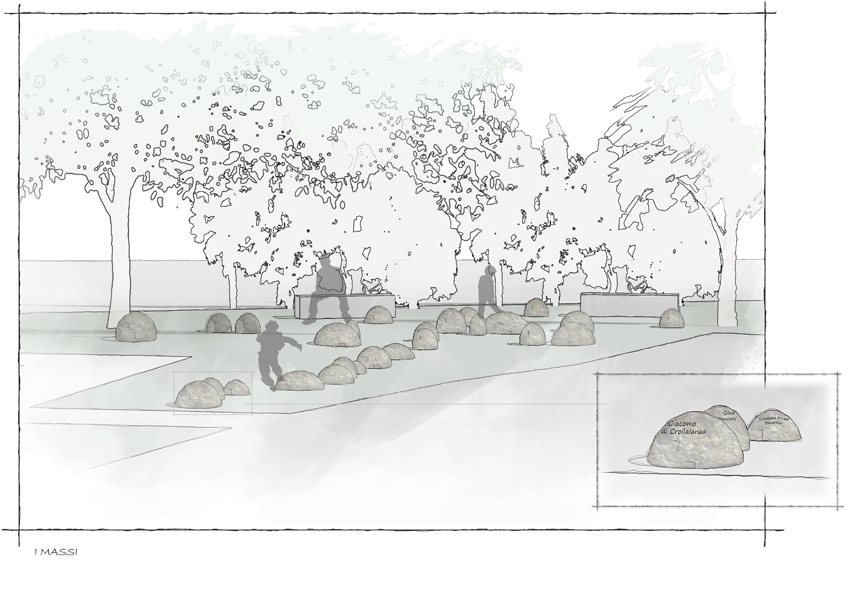 Il progetto si configura quindi come un “racconto” composto da una stratificazione di “piani storici” che contengono elementi significativi e simbolici per la memoria di ogni periodo e/o evento raccontato. Questa impostazione renderà, a nostro avviso, interessante e stimolante il giardino, configurandolo come un vero e proprio luogo della memoria che inviterà i suoi fruitori ad interessarsi e ad informarsi sui fatti che vengono raccontati; il tutto senza dimenticare, anzi vivendole in modo nuovo, le normali funzioni svolte da un giardino: gioco, relax, socializzazione, diversità ecologica, colori, profumi, suoni e movimenti dell’acqua, ecc.. L’effetto che si potrà ottenere da questo approccio sarà quello di uno spazio di forte identificazione in grado di dialogare con il contesto e che risulterà molto frequentato e, soprattutto, rispettato.