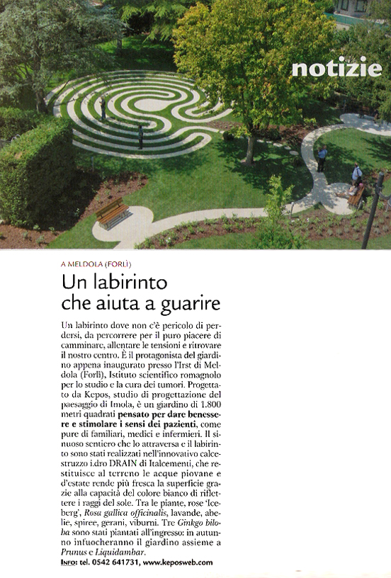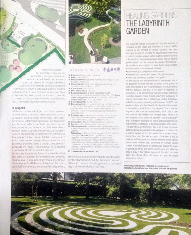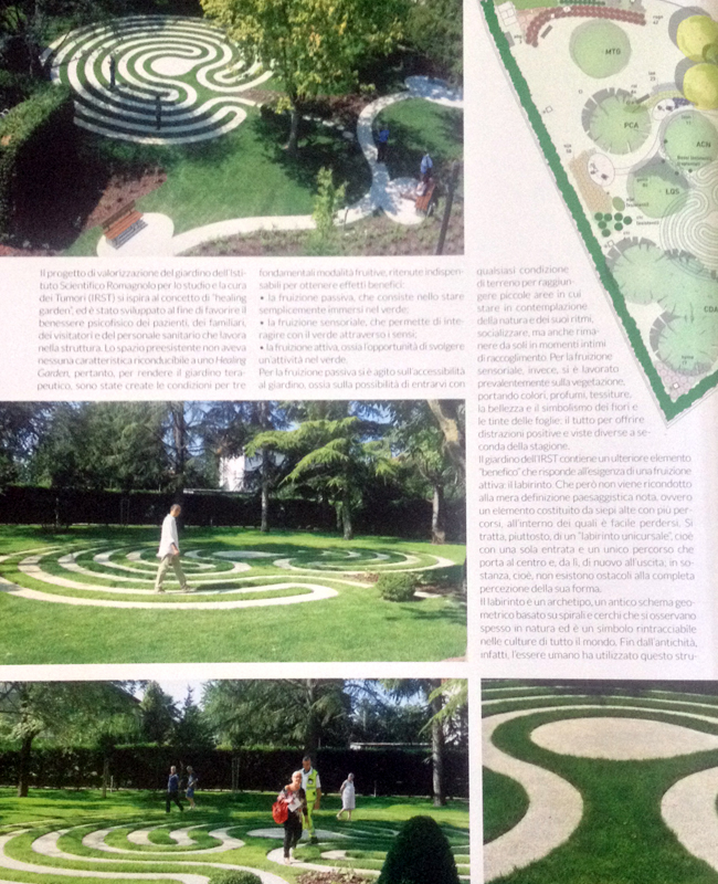 Sul numero di Settembre 2013 è stata pubblicata la notizia della realizzazione del Labirinto inserito nel Giardino dell’IRST di Meldola (FC)